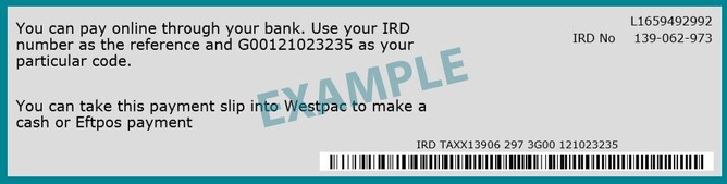 Barcodes are usually printed on returns, statements or letters from the IRD. You can also generate a barcode from the IRD website, which can be printed or shown on your device.