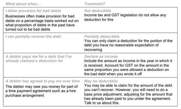 Bad debts are bigger than just claiming a tax deduction. Good debtor management can have a real impact on your cashflow and bottom line. If you would like a better system than you have now, please talk to us.